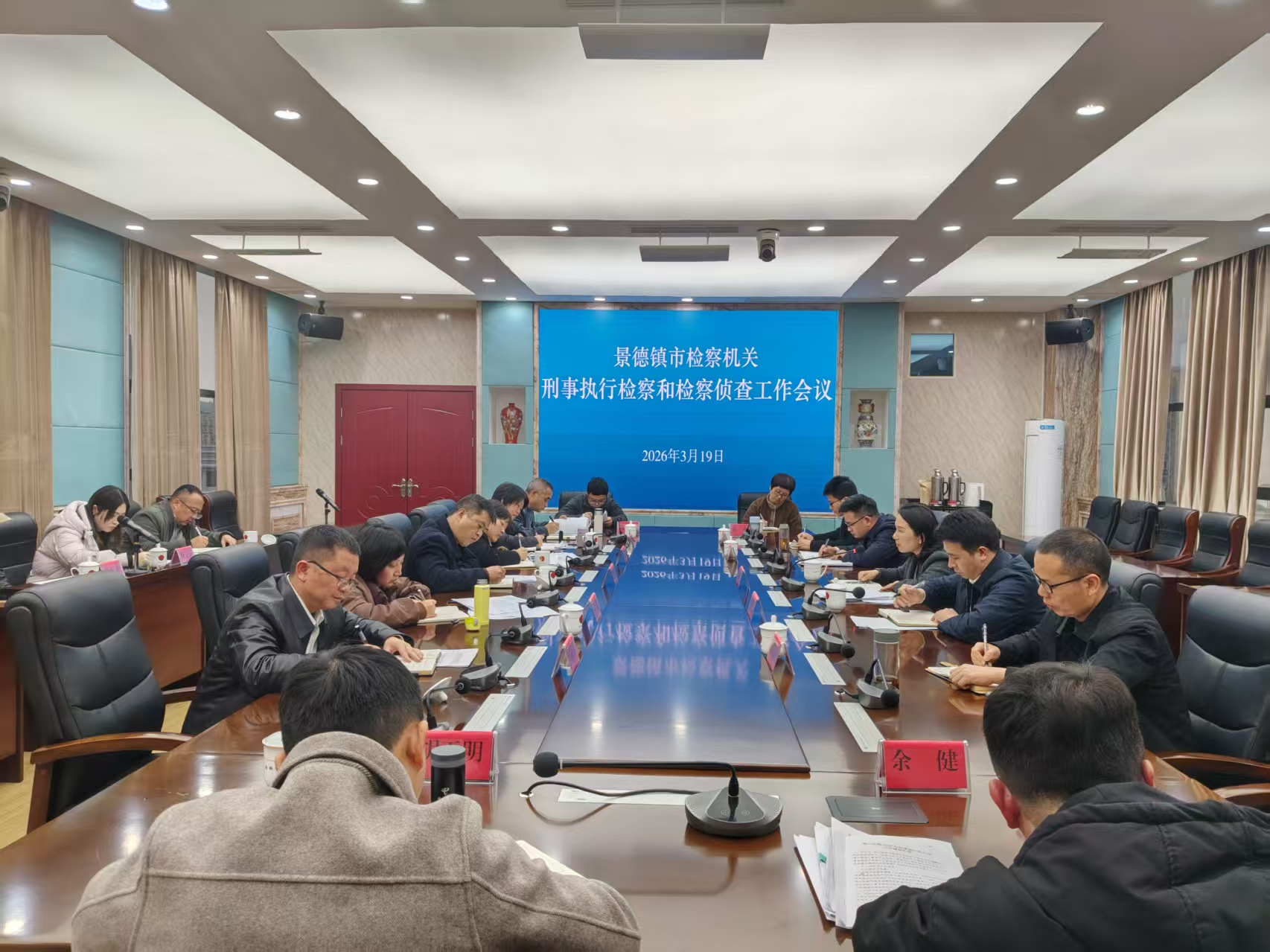 2026年3月19日,全市检察机关刑事执行检察和检察侦查工作会议召开。市检察院党组成员、副检察长李剑云,第四检察部、第七检察部全体干警,各县(市、区)院、浮南院分管、协管刑事执行检察和检察侦查条线工作的院领导、部门负责人及业务骨干等参加会议。
