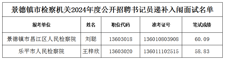 附件:景德镇市检察机关2024年度公开招聘聘用制书记员递补入闱面试人员名单